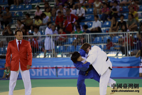 中国台湾网8月15日深圳消息 第26届深圳大运会比赛进入第3个竞赛日,今天,在深圳会展中心举行的女子柔道57公斤级和52公斤级比赛中,中华台北选手连珍羚与陈思妤双双跌入败部复活赛,最终无缘金牌。