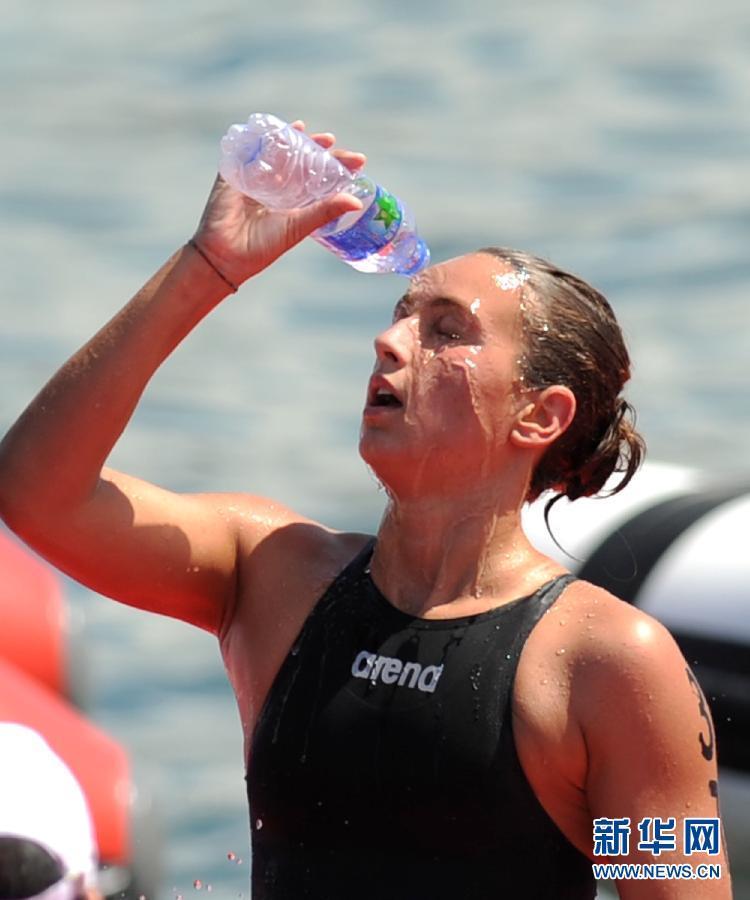 在第26届世界大学生运动会游泳项目公开水域女子10公里比赛中,布鲁尼以2小时06分49秒314的成绩夺得金牌。新华社记者卢汉欣摄