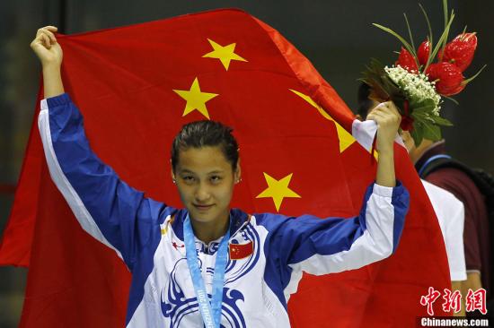 8月14日,第二十六届世界大学生运动会在深圳展开第二个正式比赛日的较量。在大运中心游泳馆举行女子50米蝶泳决赛中,中国选手陆滢以25秒98如愿摘得金牌。这枚金牌不但是中国游泳队在本届大运会上的首金,也是近两届大运会中国水军夺得的第一枚金牌。中新社发 富田 摄