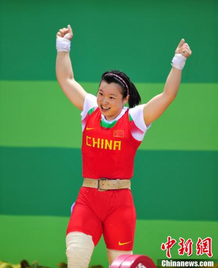 8月14日,第26届世界大学生运动会在中国深圳进入到第二个比赛日。在女子举重53公斤级A组决赛中,中国选手纪静抓举100公斤平世界青年纪录,挺举122公斤创个人最佳,最终以总成绩222公斤勇夺冠军。中华台北选手许淑净和泰国选手拜菲塔克分获亚军和季军,她们的成绩分别是207公斤和205公斤。中新社发 柯小军 摄