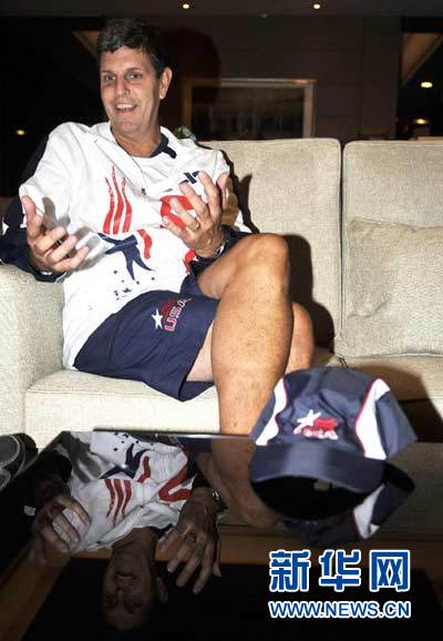尼尔斯·霍金森,一个高大开朗的美国大个子,他并没有掌握很多语言,却已经将足迹留在了世界上的70个国家,他所用的语言很简单——体育。 霍金森的身份很特殊,他曾经是一个篮球运动员、一个教练、也是一个篮球训练营组织者和篮球运动的推广者。现在,他的身份是美国大运会代表团的副团长。霍金森的70国之旅的首站就是中国。那年,19岁的他第一次离开美国,随美国大学生队到中国与中国传奇中锋穆铁柱率领的球队打比赛。这是8月10日,尼尔斯·霍金森在接受专访。 新华社记者王昊飞摄