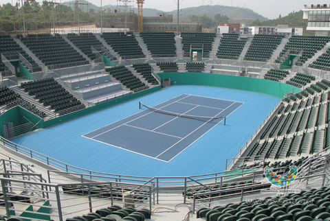 新建的十一片网球场均为标准比赛场地,其中三片有临时看台。这些场地所附的功能用房(包括新闻、医疗用房),都集中在旁边新建综合性功能楼内。三片临时看台场地设置观众座位共1300个。