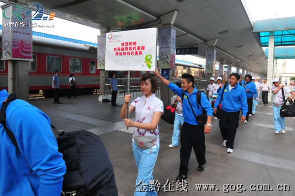 9月4日上午7点27分,第九届全国少数民族传统体育运动会西藏自治区代表团摔跤队和押加队一行18人继先期到达的马术队之后顺利抵达贵阳。这是此次运动会组委会接待部按工作计划成立火车站迎送指挥部,并举行演练后正式迎来的首批来宾。标志着第九届民族运动会的接待迎接工作正式拉开帷幕。