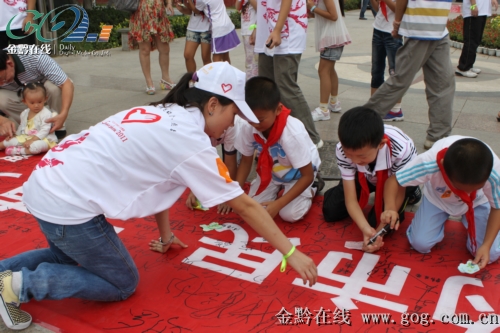 7日上午,来自贵州大学、贵州师范学院、贵州电力职业学院等10余所贵阳地区各高校的4万名大学生志愿者,头顶白色小帽、身穿白色T恤、手系绿丝带、手持各种清洁工具及各种宣传资料,纷纷走进贵阳花溪片区、金阳片区、乌当片区、清镇片区以及市区的大营坡片区、中华路、延安路、宝山路、瑞金路、北京路、观水路、遵义路、盐务街等城市街道、社区、广场、酒店、景区、商业广场及体育场馆周边等公共区域,开始拾捡果皮纸屑,清洗护栏,清扫卫生死角,对过往车辆和行人发放宣传资料及维护交通秩序……志愿者们手上的一条条温暖人心的“绿丝带”迎风飘扬,成为阳光下的一道道亮丽的风景线。