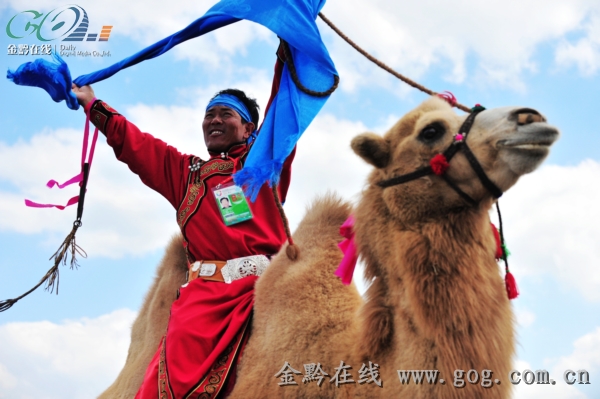 来自内蒙古自治区阿拉善盟的选手表演赛骆驼