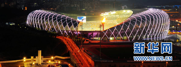 9月18日,第九届全国少数民族传统体育运动会闭幕式举办场馆——贵阳奥体中心外景格外迷人。当日,第九届全国少数民族传统体育运动会在贵州省贵阳市落下帷幕。新华社记者 刘续 摄