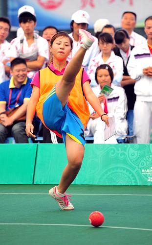 当日,在贵阳进行的第九届全国少数民族传统体育运动会蹴球比赛混合双蹴决赛中,海南组合杜顺臣/吕金花获得一等奖。