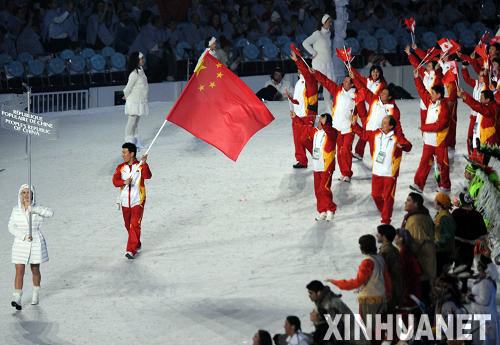 2月12日,第21届冬季奥林匹克运动会开幕式在加拿大温哥华举行。这是中国体育代表团在开幕式上入场。新华社记者杨磊摄