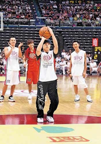 东方网7月29日消息:姚明登高一呼,周杰伦(周董)、罗志祥(小猪)昨率10名艺人在台北参加“2010姚基金慈善之旅”台北站慈善表演赛。周董、小猪在NBA球星面前不改爱秀个性,虽技不如人,但花招不少,逗得现场球迷笑声不断。
