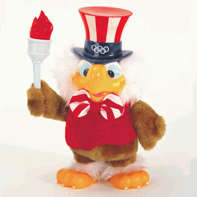 名为 Sam的老鹰以美国星条旗为背景,红白蓝颜色更是美国的代表色,以卡通造形的鹰穿着代表美国传奇人物「山姆大叔」的服装。由迪斯尼所设计的吉祥物,十足的美国风味,吉祥物被商业化利用也从此次开始。