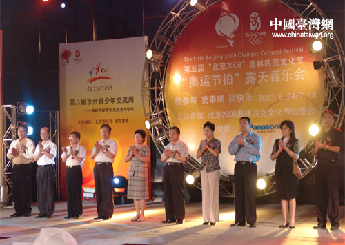 国台办副主任王富卿、北京市委常委尤兰田等领导出席了活动,并向台湾学生代表赠送奥运吉祥物福娃。联欢会上,台湾青年志愿者表达了他们期盼奥运、参与奥运、志愿服务奥运的热切愿望,京台两地青少年志愿者共同表演了合唱和舞蹈等节目,赢得了阵阵热烈的掌声。