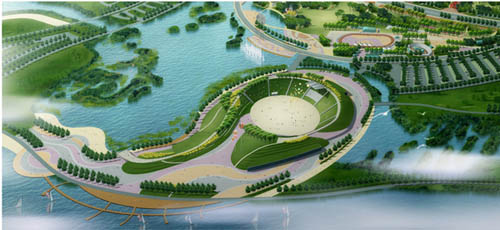 河清岛上的主体建筑绿浪剧场是2012年第三届亚沙会开闭幕式的场地,该剧场以海浪为设计原型。剧场看台区可同时容纳观众约2万人。绿浪剧场看台内部空间设置必备的贵宾休息、媒体工作、演员化妆、运动员候场、观众、安保、技防等功能用房,总建筑面积14045平方米。作为亚沙会开闭幕式的举办场地,赛后河清岛将成为集全民健身、沙滩运动、滨海旅游、文化展示等功能为一体的综合性中心。