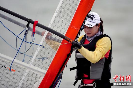 6月21日下午,第三届亚洲沙滩运动会帆板比赛圆满收官,中国运动员冯奕华、吴一苹分别获得了女子组的冠军和季军;韦必鹏获得男子组冠军,这也是他第二次摘得亚洲沙滩运动会帆板项目的冠军。至此,中国队在帆板比赛中揽获两枚金牌,一枚铜牌。图为中国运动员吴一苹在比赛中。中新网记者 金硕 摄