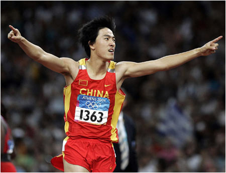 在28届奥运会上,男子110米跨栏决赛中,中国选手刘翔不仅平了已保持11年之久的世界纪录,还打破了奥运会纪录,为中国夺取了第一个田径男子项目的奥运会冠军,还成为第一位获得奥运会田径男子短跑项目冠军的亚洲人和黄种人。