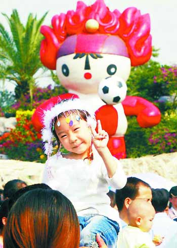 5天的北京之行安排得满满的,尽管旅游路线还是游故宫、爬长城、吃烤鸭这些传统项目,但意诚还是感受到了浓浓的奥运气息。在天安门广场,福娃造型的花坛吸引了很多游客,她等了很长的时间,才挤到了花坛边拍了几张照片。没有过瘾的意诚,又去了王府井的奥运特许商品零售店,买了一套毛绒玩具,终于和福娃亲密接触了。她最喜欢象征奥林匹克圣火的欢欢,她要把5个福娃都带回南京给同学们讲奥运的故事。