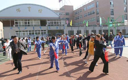 前来参观的客人都是来北京参加第五届世界体育、教育与文化论坛的代表。一进入史家胡同小学,客人们便纷纷被校园内的“和谐”石所吸引,一旁的老师连忙用熟练的英语介绍起 “和谐”象征的意义以及这所学校所开展的和谐教育。随后,客人们还参观了书法课堂和体育课堂。这些远道而来的客人不但对中国小学生的软笔书法表现出了极大的兴趣,还兴奋地与小学生们一起打起乒乓球、一起练习起击剑。在看到一年级的孩子们练习跆拳道时,他们更纷纷驻足观察,连连竖起了大拇指。