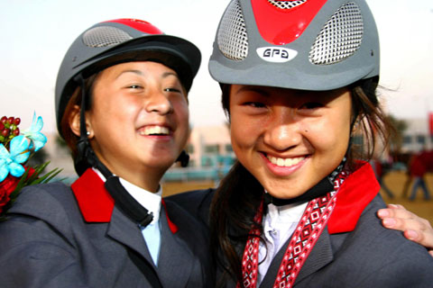展现在多哈亚运赛场上的青春笑靥,如同多哈的阳光灿烂!亚运会的所有参与者是缘分;不同种族不同信仰而同场竞技是缘分;若是并蒂孪生兄弟姐妹以项目搭档参与竞赛更是缘分。本届亚运会确有几对孪生兄弟姐妹在赛场上的出色表现,成为多哈的亮点。 这是来自中国台北的选手陈少曼(右)和陈少乔在接受采访。妹妹陈少曼在马术障碍赛中击败韩国选手夺得银牌,姐姐陈少乔取得了第四的好成绩(12月12日摄)。新华社记者龚兵摄 (来源:新浪体育)