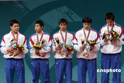 多哈当地时间十二月三日晚,中国男子乒乓球队以三比零战胜老对手韩国队,获得第十五届亚运会乒乓球男子团体冠军。中国台北与中国香港队获得铜牌。