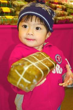 两岁的越华裔小朋友科迪对年粽爱不释手