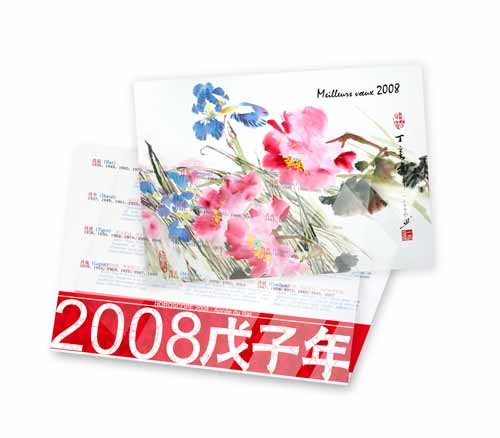 该明信片的封面是由今年法国邮局生肖鼠票的设计者、旅法华人画家何一夫先生特别绘制,封底贴有今年法国邮局发行的鼠票并加盖首日戳,每张明信片均盖有唯一的收藏号码和何先生的亲笔签名。今年该明信片又增加了鼠年运程,采取卡封结合,创意独特,意义非凡,极具收藏价值。