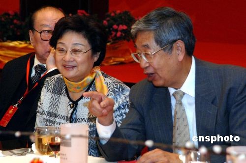 二月十八日晚,中国全国人大常委会副委员长许嘉璐(右一)、国务院侨务办公室主任李海峰(右二)在福州出席“海峡西岸闹元宵,全球华人盼团圆”活动欢迎晚宴。该活动由国务院侨务办公室、福建省人民政府、海峡两岸关系协会联合主办,来自四十多个国家和地区的海外华侨华人及港澳台同胞代表到福州欢度元宵佳节。 中新社发 王东明 摄