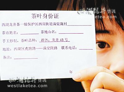 茶叶身份证由满觉陇村村委统一发放。“今后,只要是满觉陇村出产的茶叶,都会贴上这样的‘身份证’,让消费者可以清楚地知道自己喝的茶叶的来历。”满觉陇村村委主任徐善德告诉记者。