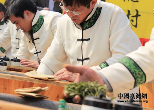 30日上午,2009年“我爱西湖,我爱龙井茶”西湖龙井茶特色展示活动在杭州市涌金广场隆重举行。图为活动现场精彩的炒茶技艺展示。(中国台湾网 田云鹏 摄)