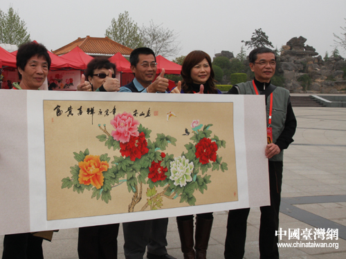 中国台湾网4月19日洛阳消息 “这里太漂亮了,我从没见过这么漂亮的牡丹”,走入中国国花园,面对一片片雍容华贵的牡丹,一位台湾媒体记者不禁发出了这样的感慨。“走进中原、寻根河洛”两岸记者联合采访团19日下午来到洛阳中国国花园进行采访。