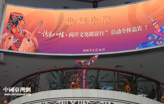 楼上的姑娘在表演绣球伞(中国台湾网 芜同 摄)