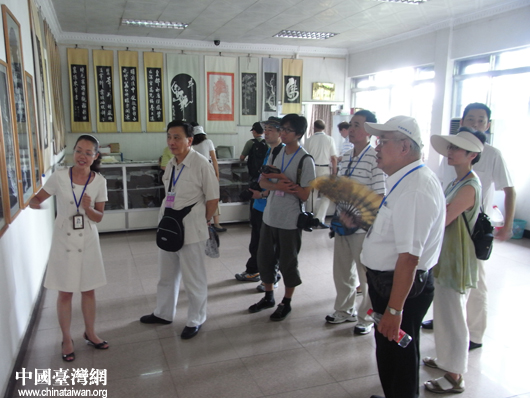 来自台湾的牛海川教授在参观王城碑拓展 (中国台湾网 芜同 摄)