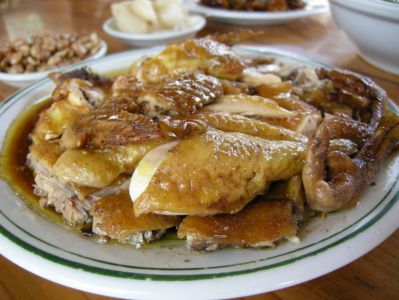 现在我要跟大家分享一种风味美食——“泥窑鸡”。座落于北海大道与湖南路交界(即金葵市场红路灯处)有间名叫“广东豪苑鸡饭店”那里的泥窑鸡选定独特配方。以高温明火烘烤独特土壤焗出纯正泥窑鸡。其味浓郁芳香,唇齿留香。经常食用可温补 强身。