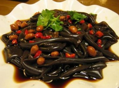 “蕨根粉”究竟是什么东西?其实,它就是从野生蕨菜的根部提炼出的淀粉类做成的粉丝食品(蕨根是一种药食两用的野生原始植物,既可入药又可食用,主要由成分特殊的高级淀粉组成)。而蕨菜的根部为紫色,因此,用其做出的粉丝也就成了黑色,这也完全符合颜色越深的,营养越高的规律。