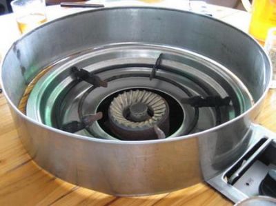 金记猪肚鸡,桌子上大大的铁皮罩。