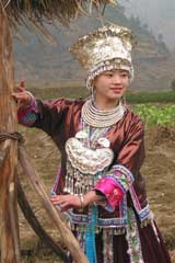 广西苗族主要居住在融水、隆林、三江、龙胜4 个自治县。苗族村寨多依山而建,小者几户 ,大者几百户 。房屋一般为“上人下畜”的“干栏”吊脚楼或三开、五开间的平房,其中以木件组装顶上盖瓦的吊脚楼最富特色。苗族音乐舞蹈历史悠久,芦笙舞技艺高超 。苗族挑花、刺绣、织锦、蜡染、首饰制作等在国际上享有盛名。苗族节日较多,较隆重的节日有“过苗年”、“跳坡节”、“龙船节”。 苗族服饰各地略有差异。 一般男子多穿青色土布短衣裤,包青头帕。女子以交领上衣和百褶裙为基本款式,一般有便装和盛装之分 ,便装朴素大方,盛装艳丽豪华。盛装花饰极多,一般有挑花和刺绣,并配戴种种银饰,如银角、银花、银簪、银发夹、银梳、银耳环、银坠子、银项圈、项链及各种银片、银铃等。