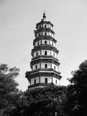桂平市东面的浔江岸畔,挺立着一座古塔,名曰东塔。它是广西现存最高的古塔。