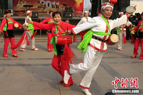 16日,为期两天的河北省保定市“正月正”文艺演出在此间军校广场启幕,12位老人展示的“非遗”绝活——“博野花鼓落子”闹元宵,受到了当地民众的热捧。