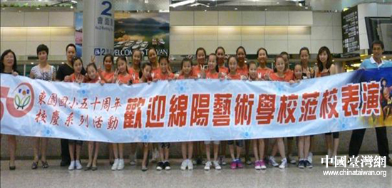 中国台湾网7月4日绵阳消息 日前,应台湾台中市教育委员会邀请,四川绵阳市艺术学校23名师生在副校长漆文华同志的率领下赴台演出,参加台湾东园小学五十周年校庆系列活动,演出圆满成功,并取得良好反响。