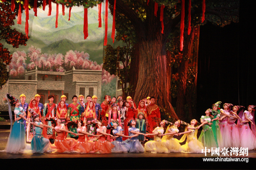 台湾嘉宾团焦仁和团长等与演员合影留念(中国台湾网 赵辉 摄)