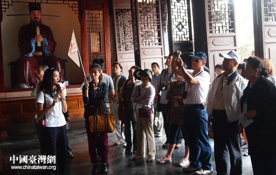 13日,参加情系巴蜀—两岸文化联谊行活动的台湾嘉宾参观眉山“三苏祠”。(中国台湾网 张瑞宸 摄)