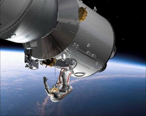 资料图:中国航天员出太空舱活动模拟图