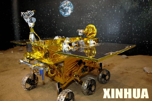 资料图片:我国自行设计研发的月面巡视探测器(简称月球车)原理机在第六届中国(珠海)国际航空航天博览会上亮相(2006年10月31日摄)。新华社记者周文杰摄