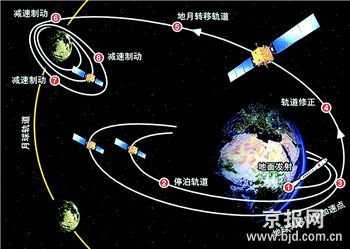 资料图片:奔月计划示意图。(胡小兵摄) 昨天(10日),绕月探测工程指挥部召开了绕月探测工程进场动员会,宣布工程已经转入发射实施阶段,卫星和运载火箭系统即将整装待发。目前绕月探测工程完成了“嫦娥一号”卫星和长征三号甲运载火箭产品研制,通过了各项试验考核验证;完成了发射场、测控、地面应用系统的建设;“嫦娥一号”卫星于日前通过了出厂评审。