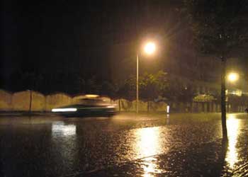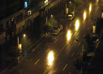 今天凌晨,记者约在3时起床上网查阅嫦娥一号资料。4时5分,忽听窗外声音异常,探身望去,果然看到最不希望看到的场景:昏暗的灯光下,雨丝如细线般飘落,没有三四分钟便成为如注的暴雨。