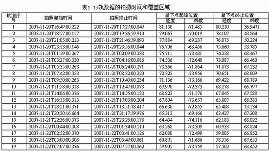 | 表1 19轨数据的拍摄时间和覆盖区域 |
