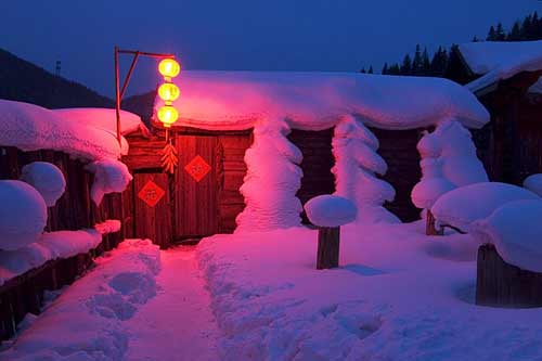 北国风光,千里冰封,天气虽然寒冷却挡不住人们过大年的热闹气氛。被誉为“东北大森林之口”的林口县从初一到十五,每家每户都要挂上红灯笼,一直亮堂着的红灯笼将雪地装点得倍有过年的气氛,如果从高处看,整个村庄如浑身散发着火热的感情,零下40℃的气温丝毫也不觉得寒冷。孩子们则要拎着红灯笼到邻居家或是亲戚朋友家串门,能收获大利是。外面一派白茫茫,孩子们提着大红灯笼,打扮得色彩斑斓、奔走在夜色流光里,有一种温暖满溢出来。