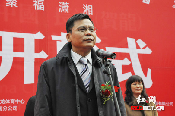 潇湘晨报社总编辑刘剑宣布年货博览会开幕。