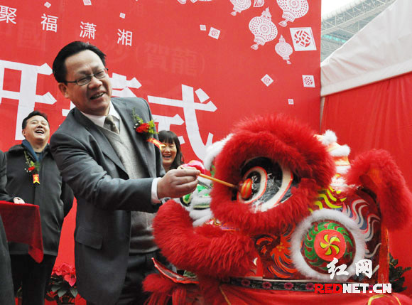 (红网董事长、总经理、总编辑舒斌在为金狮点晴。)
