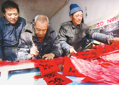 “这个腊月里,我就没怎么停过笔,一直都忙着写春联,已经写了有好几十副。”河北蔚县暖泉镇西古堡村民张富强笑着说,尽管现在市场上的春联应有尽有,但是村民们还是喜欢手写春联的传统,“贴在门上,看着红红火火,闻着还有墨香,这才真衬着日子好呢!”