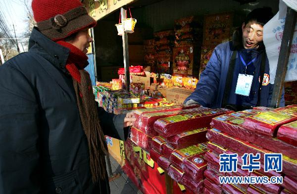 1月29日,工作人员在某烟花爆竹销售点向市民介绍花炮。新华社发(赵冰 摄)