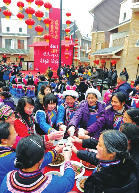 1月31日,512大地震受灾严重的映秀镇举办了一场独具川西特色的坝坝宴,独具特色的舞龙舞狮表演、千人同唱感恩歌……当日满满当当的节目安排,既是庆祝受灾群众乔迁之喜,更为灾区新春增添了喜庆氛围。